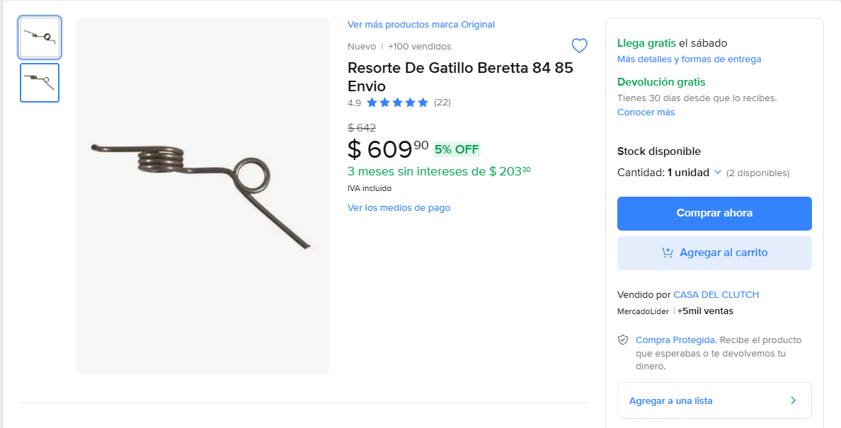 Sé el primero en valorar “Resorte De Gatillo Beretta 84 85” Cancelar la respuesta