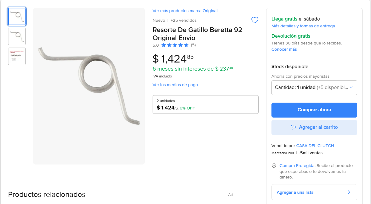 Sé el primero en valorar “Resorte De Gatillo Beretta 92 Original” Cancelar la respuesta