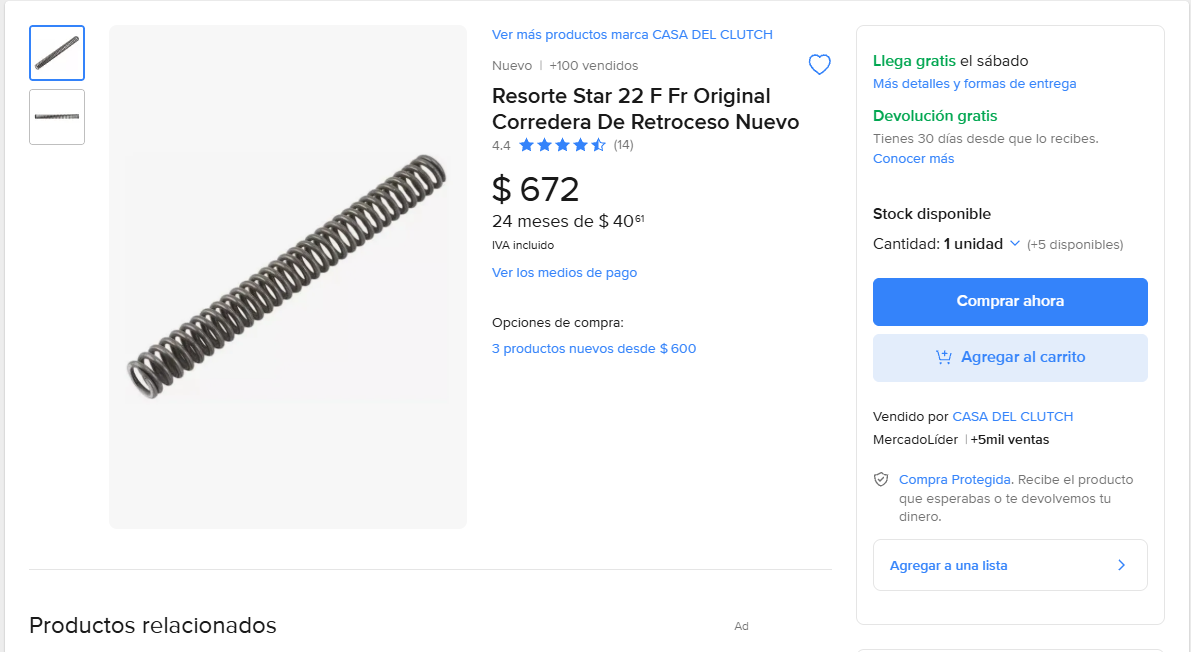 Sé el primero en valorar “Resorte Star 22 F Fr Original Corredera De Retroceso Nuevo” Cancelar la respuesta